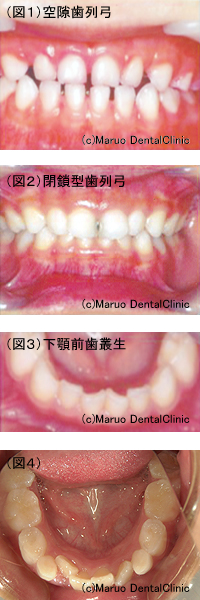 ・4~5才になったら口の中では次の永久歯が生えてくる準備が始まります。それは乳歯よりひと回りもふた回りも大きい永久歯がおさまるために、乳前歯の間には成長空隙というすき間になって表れます。(図1) このすき間が大きければ大きいほど、永久歯がきれいにおさまります。