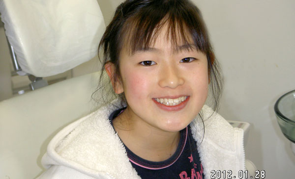 月に一回、来院して頂き、「装置がきちんと入っているか?」「使用時間は守られているか?」「週2回ネジ巻できているか?」などのチェックを行います。もしも、「装置を入れると痛い」、「装置が壊れた」など緊急時には、ご連絡の上ご来院下さい。当院技工室にてスピーディーに対応致します。 また、きれいに整っても、乳歯がまだ残っている場合は全て永久歯に交換するまで1~2ヵ月毎に点検して、12才臼歯まできれいに永久歯が整うのを確認することが理想です。